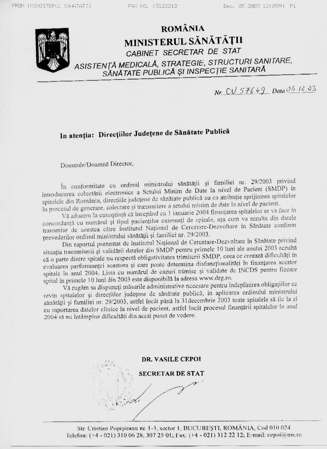 trece automat ca destinatar al mailului adresa drg@ms.ro. Va rugam sa corectati